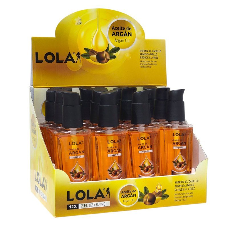 LOLA ACEITE DE ARGAN HIDRATA EL CABELLO, AUMENTA EL BRILLO, REDUCE EL FRIZZ, HUMECTANTE NATURAL QUE HIDRATA EL CABELLO SECO Y QUEBRADIZO, PROTEGE CONTRA EL DALO POR CALOR Y FORTALECE EL CABELLO, REDUCIENDO LA ROTURA Y LAS PUNTAS ABIERTAS, PROMUEVE EL CRECIMIENTO DEL CABELLO AL NUTRIR EL CUERO CABELLUDO Y MEJORA EL FLUJO SANGUINEO, CONT. 60ML
