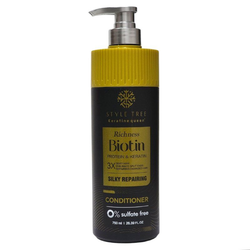 KERATINE QUEEN STYLE TREE RICHNESS BIOTIN PROTEIN & KERATIN CONDITIONER PROTEÍNA Y QUERATINA ACONDICIONADOR 3X CABELLO SEDOSO,ELIMINA LAS PUNTAS ABIERTAS,REPARANDO EL CABELLO DAÑADO,REPARADOR SEDOSO,NUESTRO ACONDICIONADOR HIDRATANTE ESTÁ ENRIQUECIDO CON BIOTINA, QUERATINA Y PROTEÍNA, QUE AYUDA A QUE NUESTRO CABELLO SE VUELVA SEDOSO Y TAMBIÉN A REPARAR EL CABELLO DAÑADO TAMBIÉN PUEDE AUMENTAR EL VOLUMEN Y EL BRILLO DE NUESTRO CABELLO Y ELIMINAR LAS PUNTAS ABIERTAS STYLE TREE PARA COMBATIR PROBLEMAS COMO LA CAÍDA DEL CABELLO Y LA PÉRDIDA DEL CABELLO, ES POSIBLE QUE TU SHAMPOO Y ACONDICIONADOR HABITUALES NO SEAN SUFICIENTES NECESITAS PRODUCTOS PARA EL CUIDADO DEL CABELLO QUE BRINDEN LA MEJOR SOLUCIÓN PARA TUS NECESIDADES NECESITAS UN PRODUCTO ESPECIALIZADO COMO STYLE TREE CONT. 750ML