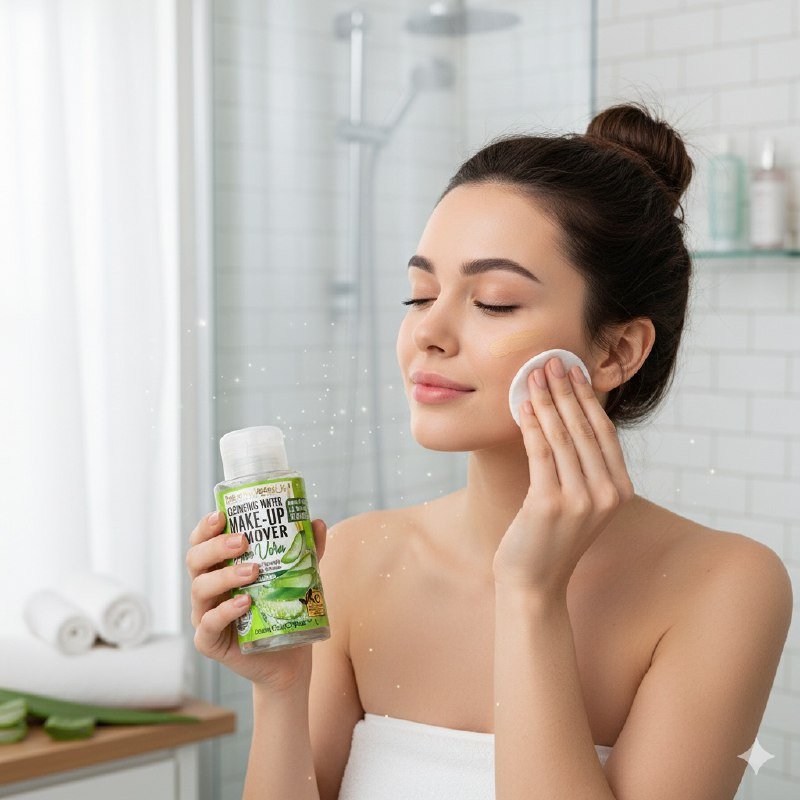 FRUIT OF THE WOKALI AGUA DESMAQUILLANTE DE ALOE VERA, LIMPIA Y PURIFICA A FONDO, LIMPIA LOS POROS, DESMAQUILLA CUALQUIER TIPO DE MAQUILLAJE EN LAS ZONAS DE TUS OJOS, LABIOS O RESTO DE TU CARA, REMUEVE MAQUILLAJES APRUEBA DE AGUA O DE LARGA DURACIÓN, TE ASEGURA UNA TEXTURA FRESCA Y RADIANTE GRACIAS A SU COMPONENTE DE ALOE VERA, CONT. 300ML