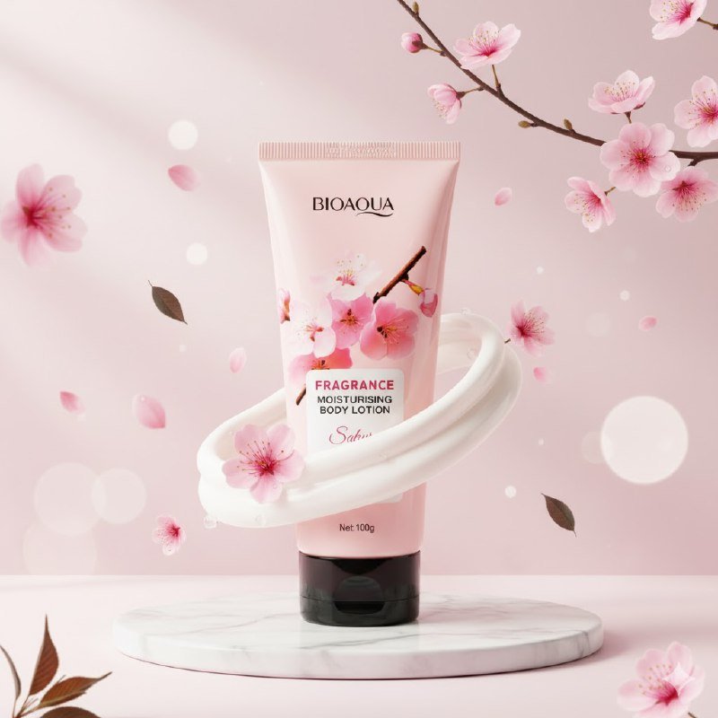 LOCION CORPORAL HIDRATANTE BIOAQUA CON FRAGANCIA SAKURA, DISEÑADA PARA NUTRIR Y HIDRATAR LA PIEL DE MANERA PROFUNDA Y DURADERA. SU FÓRMULA CUÍDA CADA CENTÍMETRO DE TU PIEL, MEJORANDO LA TEXTURA ÁSPERA Y SECA, PARA DEJARLA DELICADA, SUAVE Y RADIANTE. DISFRUTA DE UNA ENCANTADORA FRAGANCIA A FLOR DE CEREZO QUE FLORECE EN TU PIEL. CONTENIDO 100G.