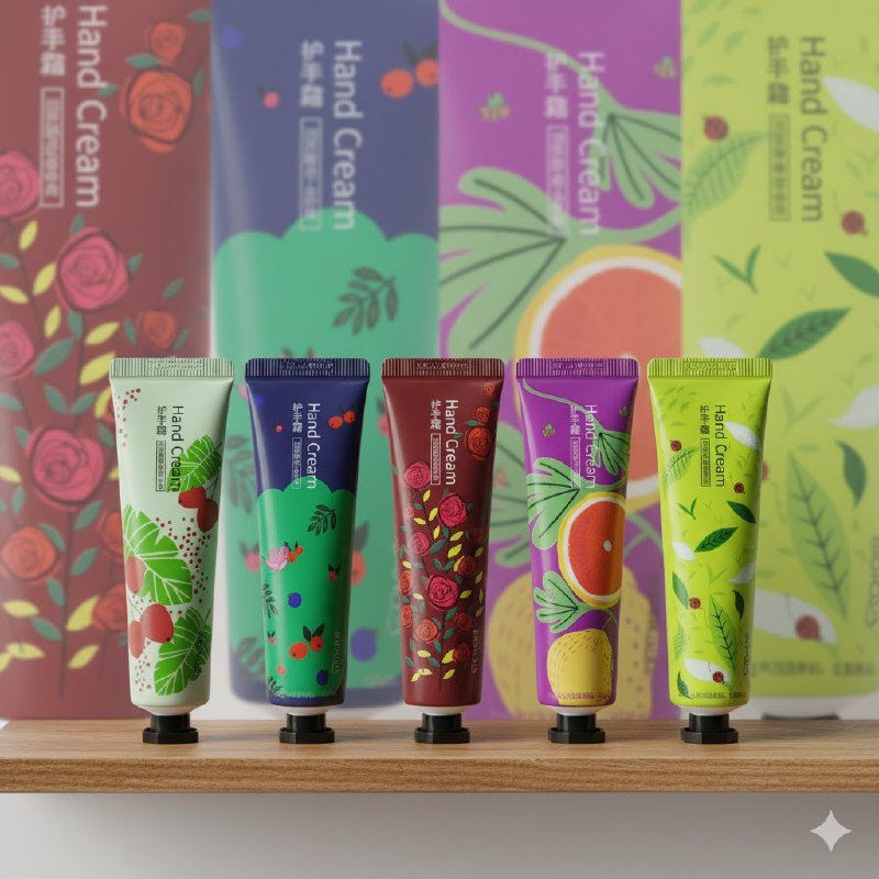 HAND CREAM, SET DE CREMA DE MANOS CON FRAGANCIA VEGETAL, DESCUBRE LA COLECCIÓN DE 5 CREMAS PARA MANOS QUE TRANSFORMARÁN TU RUTINA DE CUIDADO. CADA TUBO ES UNA EXPERIENCIA ÚNICA, CON AROMAS INSPIRADOS EN LA NATURALEZA: FRUTAS FRESCAS, DELICIOSAS BAYAS Y EL ENCANTO DE LAS ROSAS.