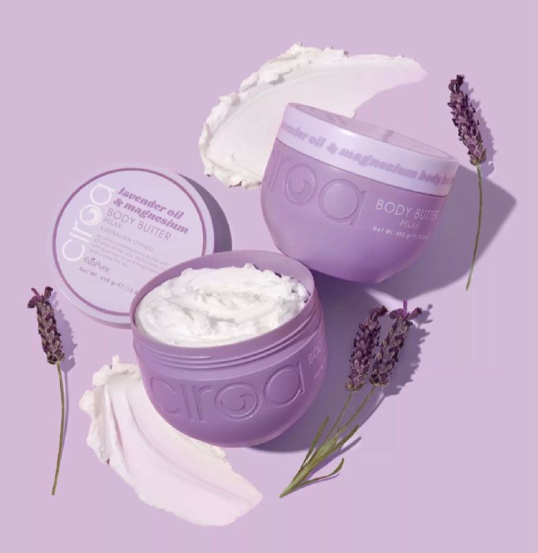 CIROA BODY BUTTER RELAX LAVANDER OIL AND MAGNESIUM, ES UNA CREMA CORPORAL CON LECHE DE CABRA Y COLÁGENO,DISEÑADA PARA AYUDAR A RELAJAR Y NUTRIR LA PIEL, CONTIENE ACEITE DE LAVANDA Y MAGNESIO CONT.450G
