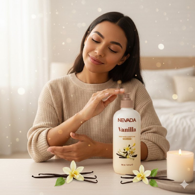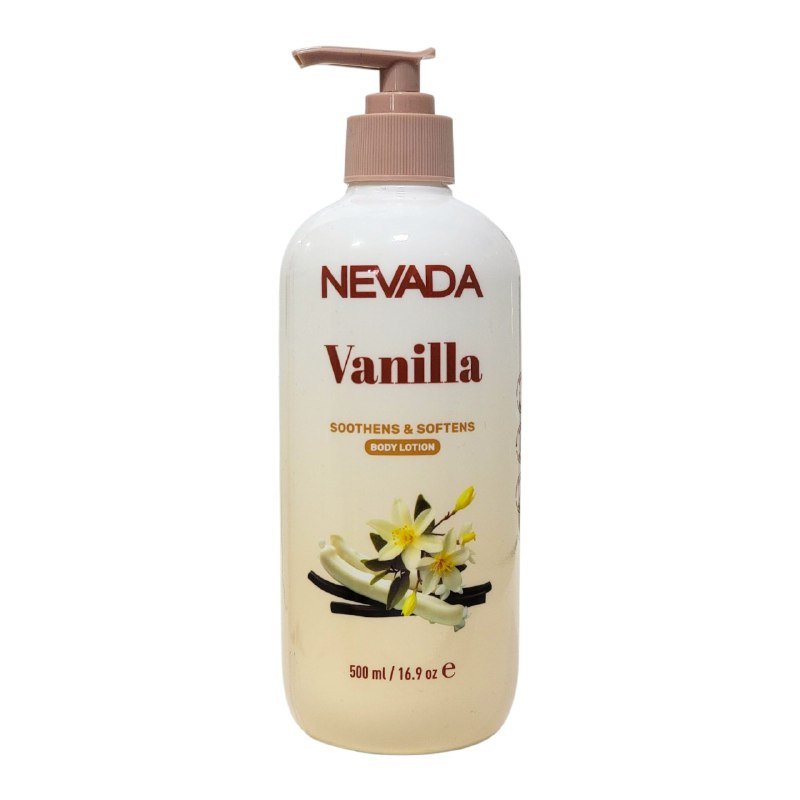 NEVADA VANILLA SOOTHENS & SOFTENS BODY LOTION, LOCIÓN CORPORAL DE VAINILLA SUAVIZANTE Y CALMA, PARA USO DIARIO, HIDRATA, NUTRE Y APORTA BRILLO NATURAL A LA PIEL, DEJANDO UN AGRADABLE AROMA, CONT. 500ML