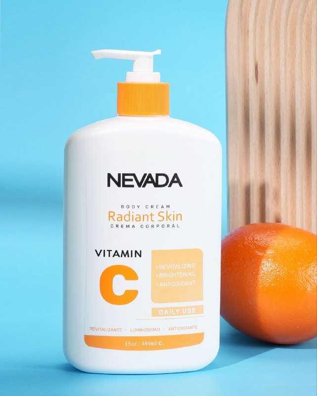 NEVADA BODY CREAM RADIANT SKIN VITAMIN C, CREMA CORPORAL DE VITAMINA C LUMINOSIDAD Y ANTIOXIDANTES. LA VITAMINA C UNIFICA EL TONO DE LA PIEL, REDUCE MANCHAS Y ESTIMULA LA PRODUCCIÓN DE COLÁGENO PARA UN ASPECTO MÁS JUVENIL. REVITALIZANTE, LUMINOSIDAD, ANTIOXIDANTE. CONT.444ML