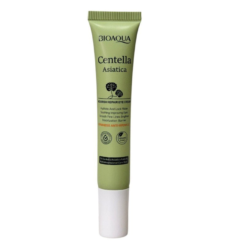 CREMA REPARADORA PARA OJOS BIOAQUA CENTELLA ASIATICA QUE HIDRATA Y NUTRE LA PIEL DEL CONTORNO OCULAR. REDUCE LAS LINEAS SECAS Y FINAS, MEJORA LAS OJERAS Y FORTALECE LA FIRMEZA Y SUAVIDAD DE LA PIEL. IDEAL PARA LOGRAR UNA MIRADA JOVEN, RADIANTE Y DELICADA. CONTENIDO: 20G.