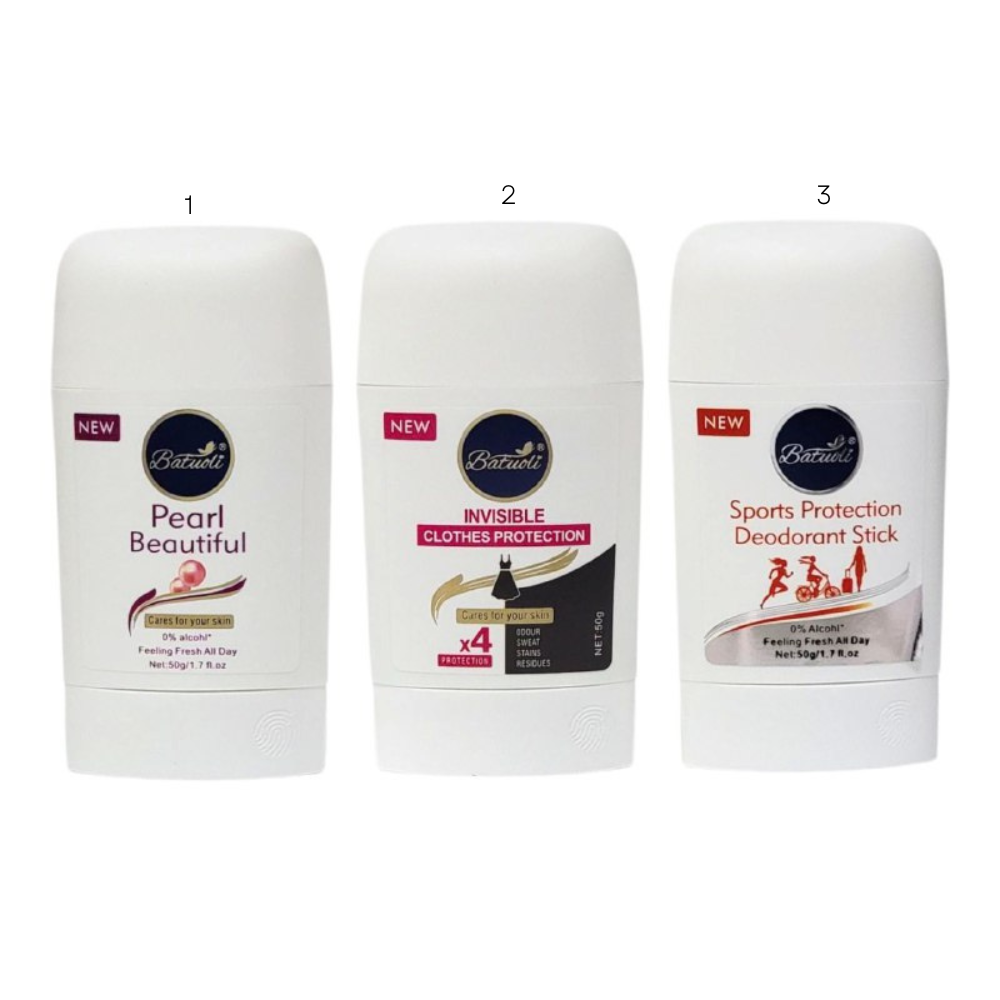 BATUOLI DESODORANTE EN BARRA OFRECE 24 HORAS DE PROTECCIÓN Y UNA APLICACIÓN SUAVE EXPERIMENTE UNA SENSACIÓN EXTRA FRESCA Y NO PEGAJOSA EN LA PIEL CON SU FÓRMULA ÚNICA EFECTO FRESCO DE LARGA DURACIÓN QUE DURA MÁS DE UNAS POCAS HORAS CIENTÍFICAMENTE PROBADO PARA COMBATIR ACTIVAMENTE LAS BACTERIAS QUE CAUSAN EL MAL OLOR Y OFRECE UNA SELECCIÓN DE FRAGANCIAS INCREÍBLES EXPERIMENTE UNA SENSACIÓN EXTRA FRESCA Y NO PEGAJOSA EN LA PIEL LA FÓRMULA DERMATOLÓGICAMENTE PROBADA Y SIN ALCOHOL ETÍLICO ES SUAVE PARA LA PIEL CONTIENE 0% DE ALUMINIO CONT. 50G