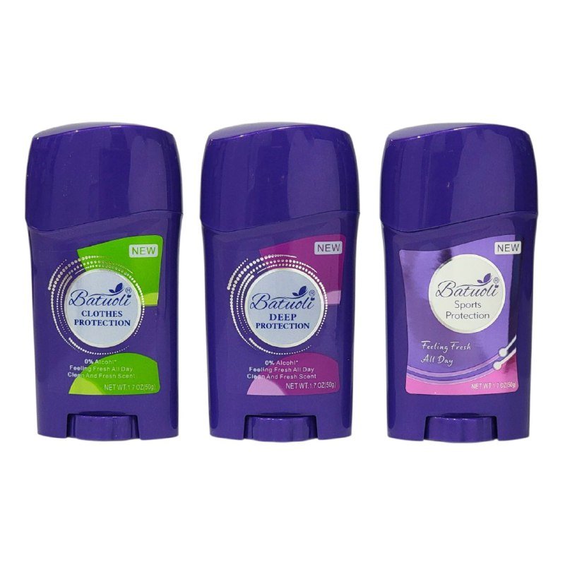 DESODORANTE PARA MUJERES ANTITRANSPIRANTE EN BARRA, OFRECE 24H DE PROTECCION, APLICACION SUAVE SENSACION FRESCA Y NO PEGAJOSA, LARGA DURACION BATUOLI 50G (DUPE LADY SPEED STICK)