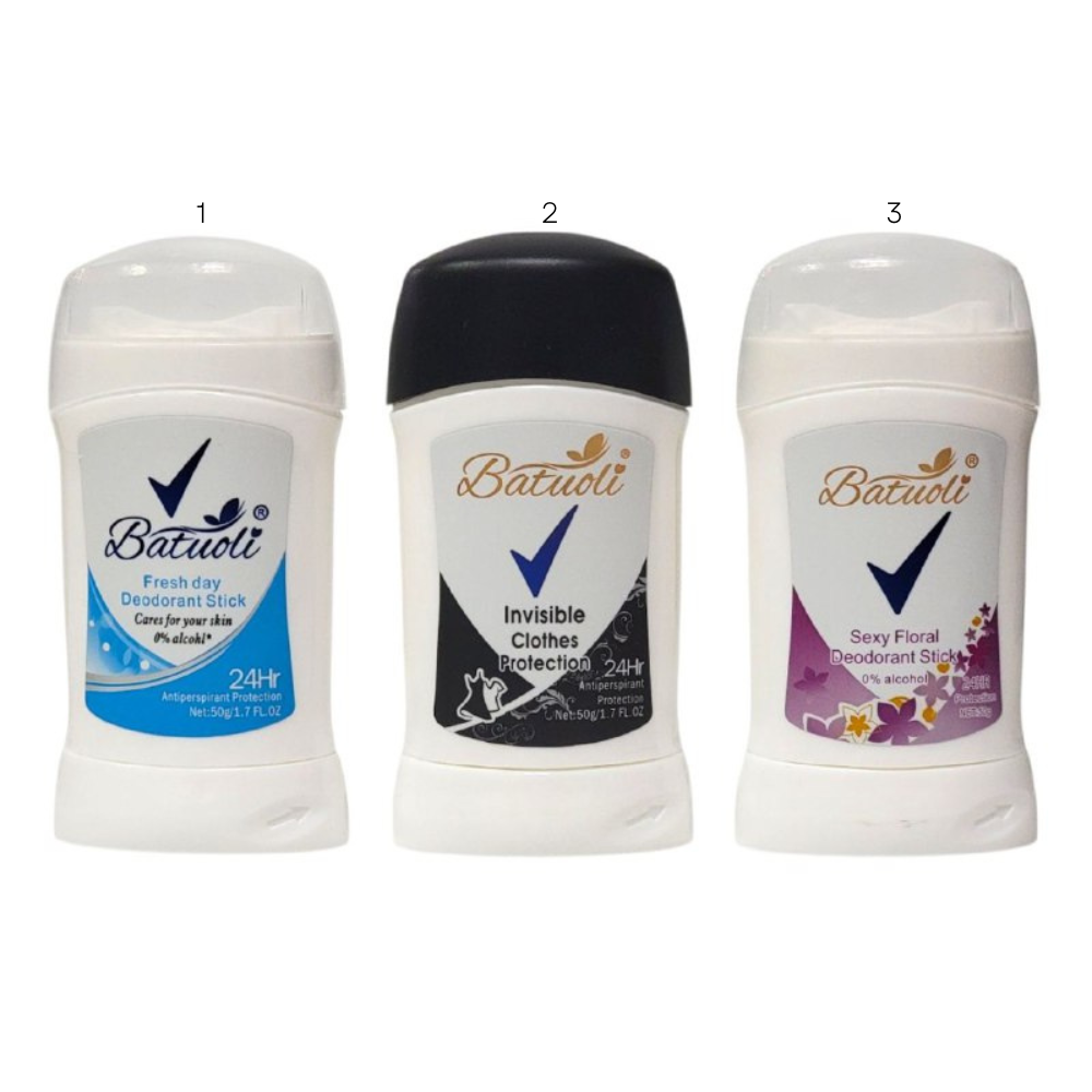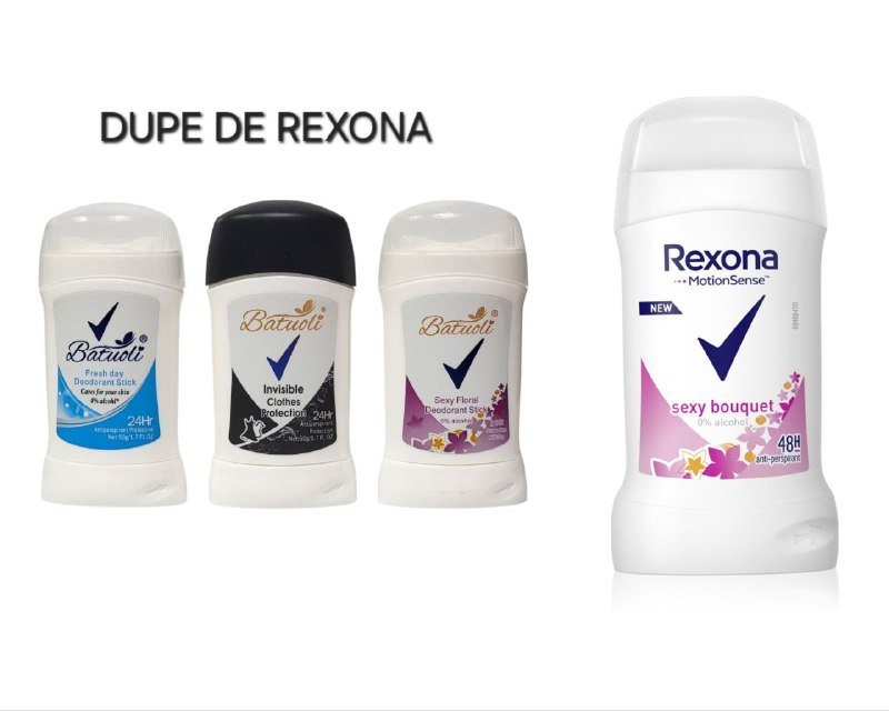 DESODORANTE PARA MUJERES ANTITRANSPIRANTE EN BARRA, SIN ALCOHOL, EFECTO HUMECTANTE QUE PROTEGE TUS AXILAS DEL OLOR HASTA POR 48H Y UN REFRESCANTE AROMA BATUOLI 50G (DUPE DE REXONA)