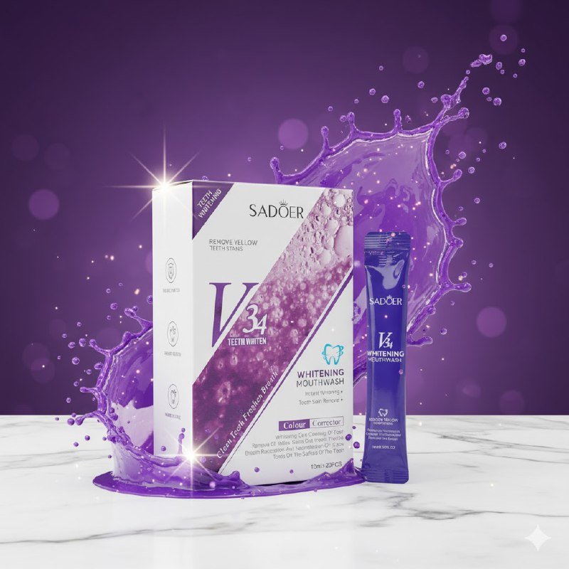 SADOER WHITENING MOUTHWASH ES UN ENJUAGUE BUCAL BLANQUEADOR QUE REMUEVE EL AMARILLO DE LOS DIENTES AL INSTANTE, GARANTIZANDO UNA LIMPIEZA PROFUNDA DE MANCHAS Y SARRO. SU FÓRMULA REVITALIZA EL COLOR DE LOS DIENTES, FORTALECE LAS ENCÍAS, PROTEGE TU SONRISA Y DEJA UN ALIENTO FRESCO DURADERO. PRESENTACIÓN DE 10ML EN PAQUETE DE 20 PIEZAS PARA UNA SONRISA MÁS RADIANTE Y SALUDABLE.