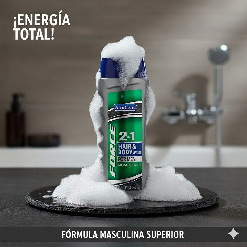 XTRACARE HAIR AND BODY WASH FOR MEN, GEL DE BAÑO PARA EL CABELLO Y EL CUERPO PARA HOMBRES, RICO EN HUMEDAD, ENRIQUECIDO CON VITAMINA EPARA AYUDAR A RESTAURAR EL EQUILIBRIO NATURAL DE LA HUMEDAD DE SU CABELLO Y PIEL, CONT. 413ML
