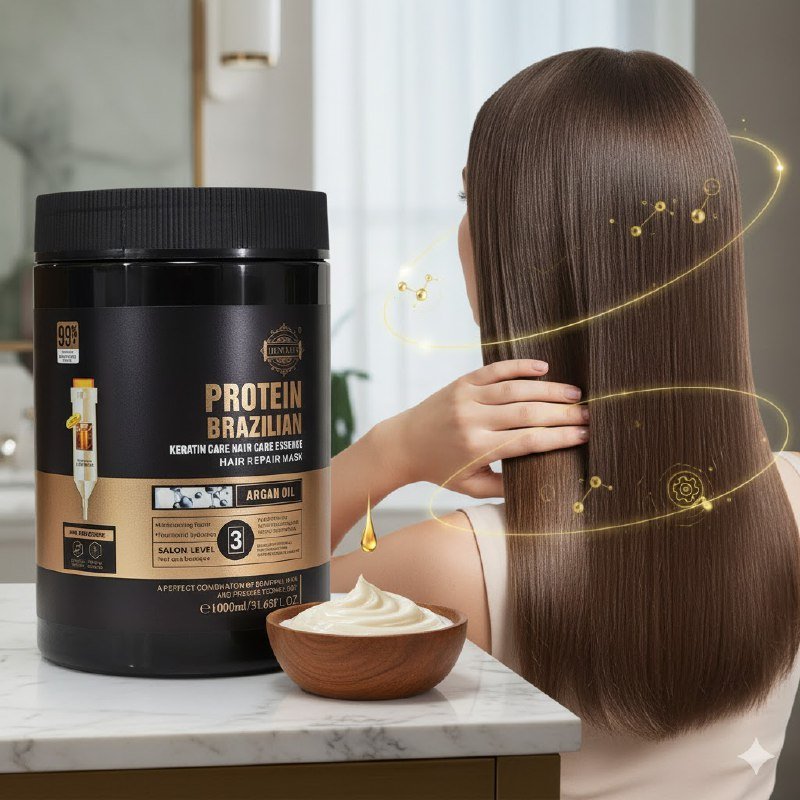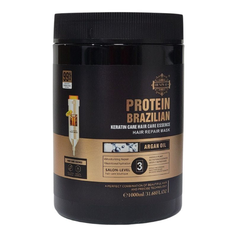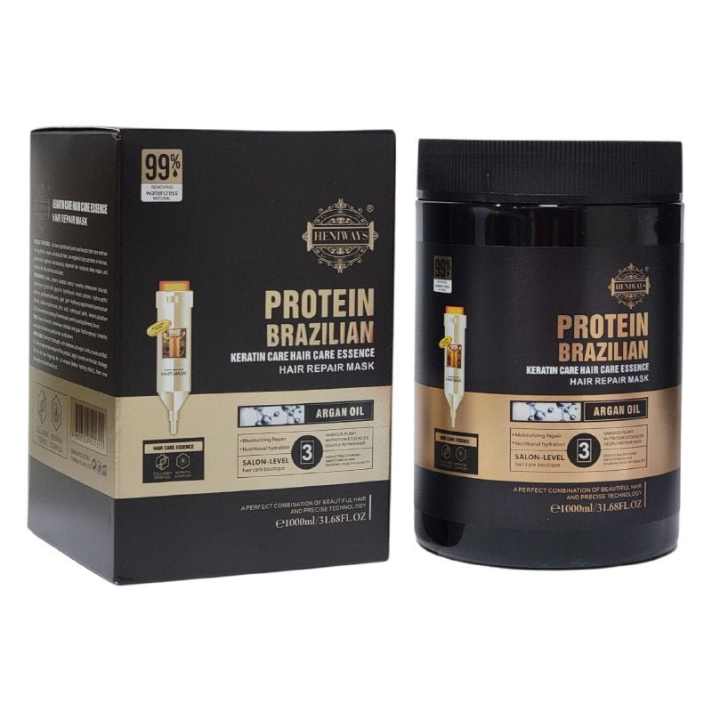 Mascara para el Cabello con Proteina Brasileña y Esencia de Keratina Reparadora 1000ml, Diseñada para Reparar y Nutrir el Cabello Seco Dejando el Pelo Suave y Brillante Heniways
