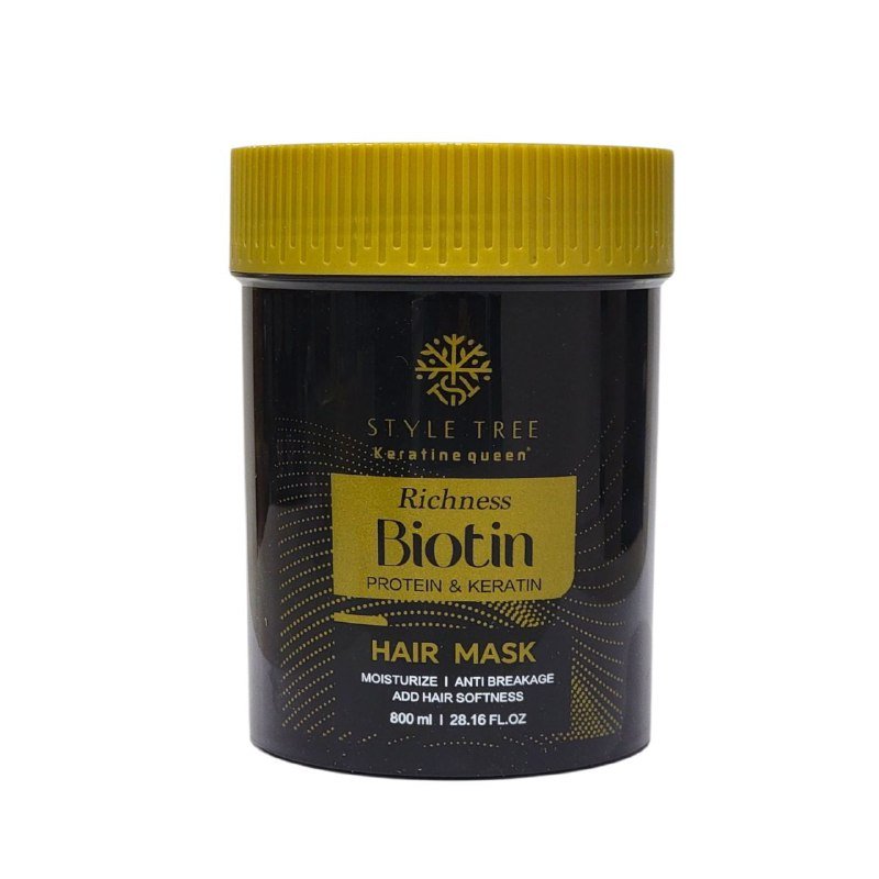 MASCARA PARA EL CABELLO FORTALECEDORA CON BIOTINA Y PROTEINA 750ML, QUE HIDRATA PROFUNDAMENTE Y APORTA SUAVIDAD AL CABELLO, DEJANDOLO SUAVE Y CON MENOS FRIZZ KERATINE QUEEN