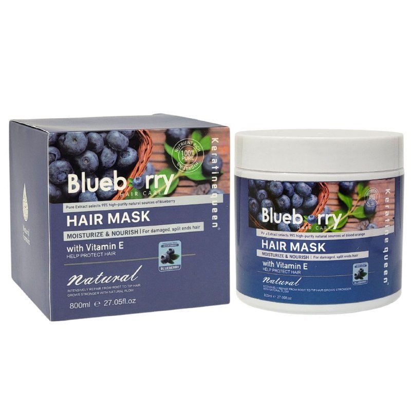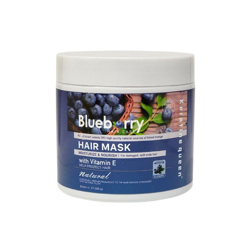 KERATINE QUEEN BLUEBERRY HAIR CARE MASCARILLA CAPILAR HIDRATANTE Y NUTRITIVA, IDEAL PARA CABELLO DAÑADO Y CON PUNTAS ABIERTAS. CON VITAMINA E, COLÁGENO, VITAMINAS C Y B2, Y RICOS MINERALES QUE REPARAN PROFUNDAMENTE LA SEQUEDAD Y EL DAÑO AMBIENTAL. ESTA FÓRMULA FRESCA A BASE DE FRUTAS NATURALES HIDRATA EL CUERO CABELLUDO SECO, REDUCE LA DESCAMACIÓN Y DEJA EL CABELLO SUAVE, SALUDABLE Y MANEJABLE. ALISA EL CABELLO ENCRESPADO Y OFRECE UN CUIDADO INTENSIVO Y SUAVE DIARIO.