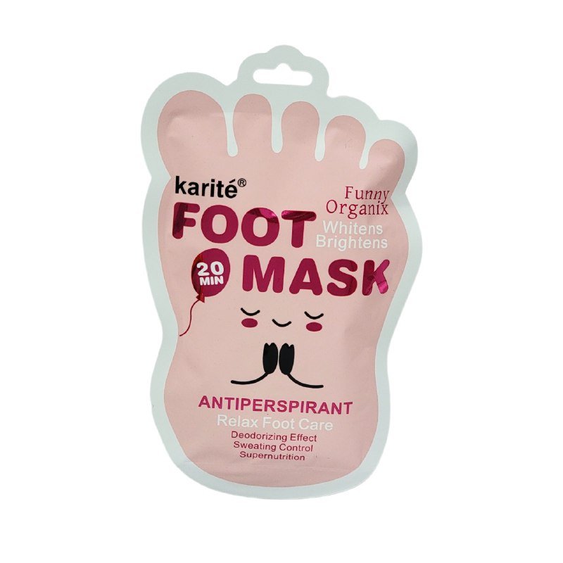 KARITE FOOT MASK, MASCARILLA PARA PIES, ORGANICO, BLANQUEA E ILUMINA, ANTITRANSPIRANTE, CUIDADO DE LOS PIES RELAJANTES, EFECTO DESODORANTE, CONTROLA LA SUDORACION, SUPERNUTRICION, MANTELAS EN TUS PIES POR 20MIN, CONT. 1 PAR