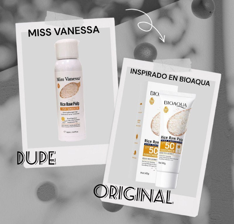 PROTECTOR SOLAR EN SPRAY DE PULPA CRUDA DE ARROZ HIDRATANTE MISS VANESSA 150ML DUPE DE BIOAQUA