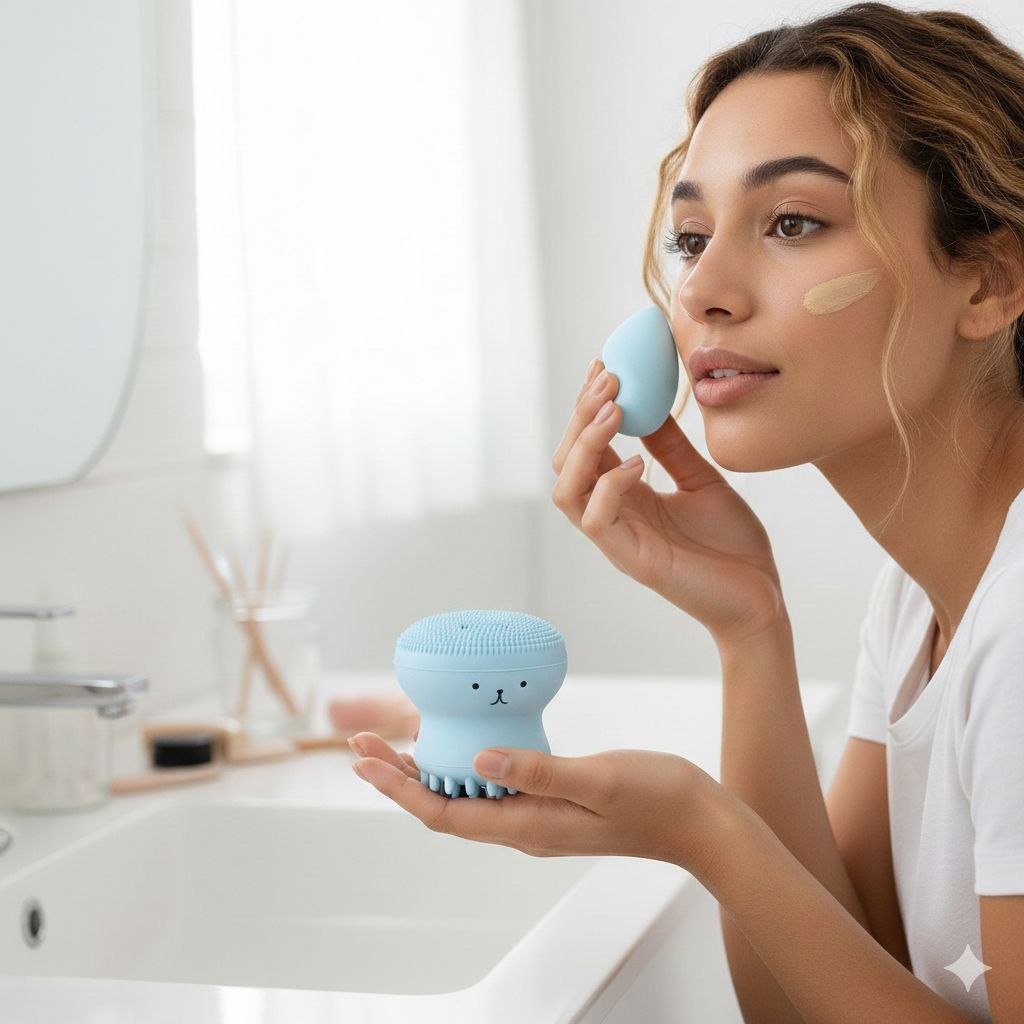 LIMPIADOR FACIAL DE SILICONA UNA HERRAMIENTA DE DOBLE FUNCION, INTRODUCE UN POCO DE JABON FACIAL LIQUIDO EN LA PARTE INFERIOR, PRESIONA PARA CREAR ESPUMA Y SE UTILIZA LA PARTE SUPERIOR DE CERDAS FINAS PARA DAR UN MASAJE CIRCULAR EN EL ROSTRO