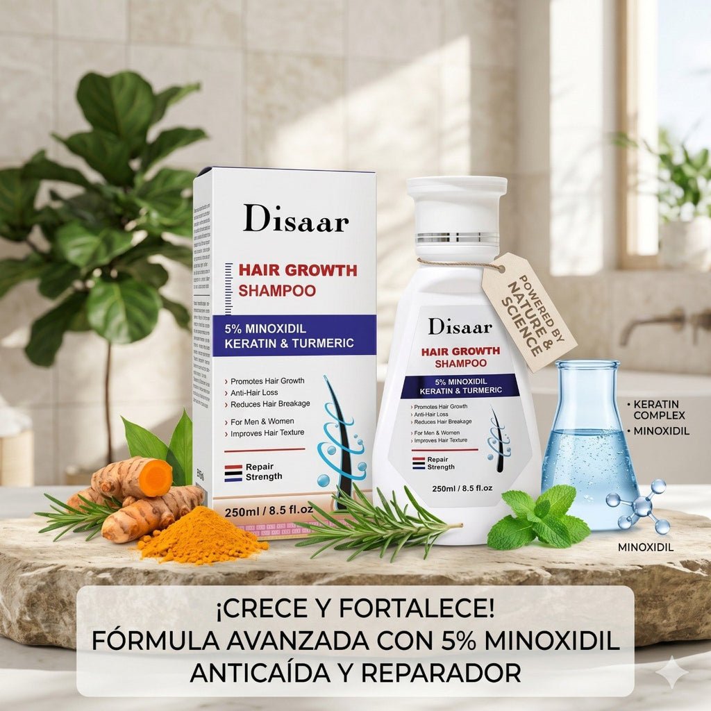DISAAR HAIR GROWTH SHAMPOO – SHAMPOO ESTIMULANTE CON 5% MINOXIDIL, QUERATINA Y CÚRCUMA (250ML)