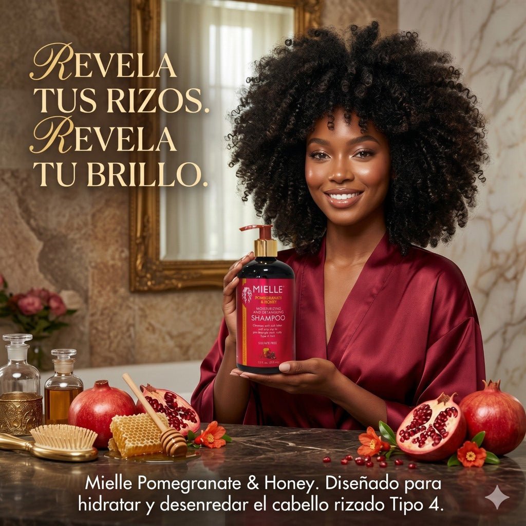 Nutrición Orgánica: La granada aporta antioxidantes que fortalecen la hebra, mientras que la miel actúa como un humectante que sella la humedad necesaria para los rizos más cerrados.