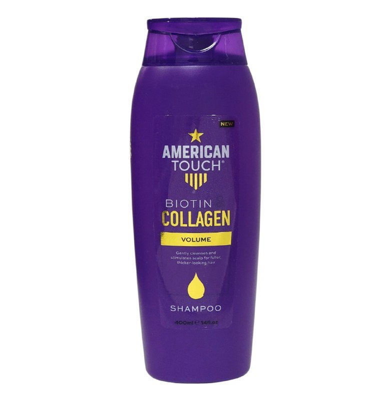 AMERICAN TOUCH SHAMPOO CON BIOTINA Y COLAGENO, LIMPIA SUAVEMENTE Y ESTIMULA EL CUERO CABELLUDO PARA UN CABELLO MAS LLENO Y DE ASPECTO MAS GRUESO, AYUDA A INFUNDIR NUTRIENTES EN CADA MECHON DE CABELLO LUCIENDOLO MAS NUTRITIVO, CONT. 400ML