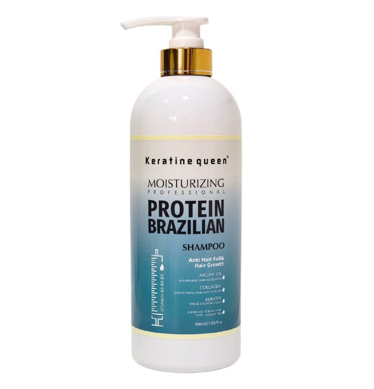 Shampoo para el Cabello con Keratina, Vitamina B5 y Proteina Brasileña Hidratante 800ml, Formulado para Limpiar Profundamente Mientras Hidrata Aumentando la Suavidad Keratine Queen