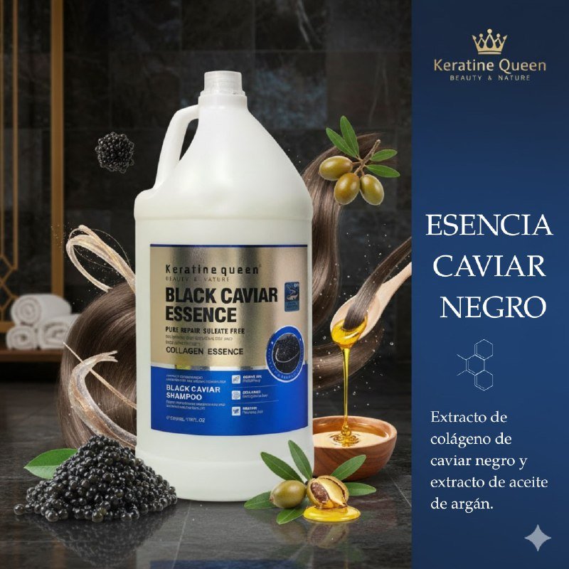 KERATINE QUEEN BEAUTY & NATURE BLACK CAVIAR ESSENCE COLLAGEN SHAMPOO ES UN LIMPIADOR SIN SULFATOS QUE REPARA Y NUTRE EL CABELLO ÁSPERO GRACIAS A SU EXTRACTO DE COLÁGENO DE CAVIAR NEGRO Y ACEITE DE ARGÁN. CON AMINOÁCIDOS SUAVES Y QUERATINA, FORTALECE EL CABELLO FINO, DEJÁNDOLO SUAVE, HIDRATADO Y ELÁSTICO. SU FÓRMULA HIDRATANTE MEJORA LA CALIDAD DEL CUERO CABELLUDO PARA UN APARATO SALUDABLE. PRESENTADO EN 5000ML PARA UN CUIDADO PROFESIONAL DE LARGA DURACIÓN.