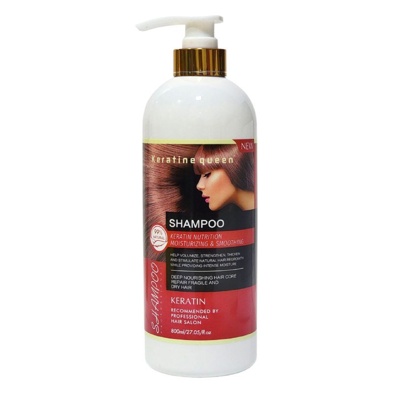 SHAMPOO KERATINE QUEEN DE QUERATINA QUE NUTRE, HIDRATA Y SUAVIZA EL CABELLO. AYUDA A DAR VOLUMEN, FORTALECER, ENGROSAR Y ESTIMULAR EL CRECIMIENTO NATURAL. CON EXTRACTO BOTÁNICO NATURAL, OFRECE NUTRICIÓN PROFUNDA Y REPARACIÓN DEL CABELLO FRÁGIL Y SECO. FORMULADO SIN SULFATOS, DEJA EL CABELLO SANO, SUAVE Y BRILLANTE. CONTENIDO: 800ML.