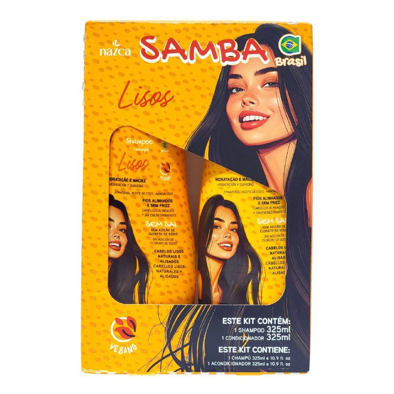 NAZCA SAMBA LISOS KIT SHAMPOO Y ACONDICIONADOR, ESTE ES UN KIT VEGANO DISEÑADO ESPECÍFICAMENTE PARA CABELLOS LISOS (NATURALES Y ALISADOS). SUS BENEFICIOS SON:HIDRATACIÓN Y SUAVIDAD.PELO ALINEADO Y SIN ENCRESPAMIENTO (ANTI-FRIZZ).LIBRE DE SAL (SIN ADICIÓN DE CLORURO DE SODIO).CON D-PANTENOL, ACEITE DE COCO Y AMINOÁCIDOS. CONTIENE:1 SHAMPOO CONT.325ML 1 ACONDICIONADOR CONT.325ML