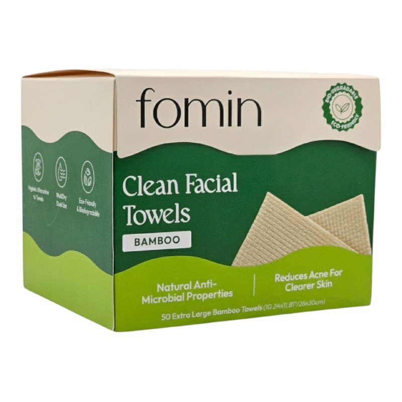 PRODUCTO AMERICANO, FOMIN CLEAN FACIAL TOWELS BAMBOO, SON TOALLITAS DESECHABLES EXTRASUAVES Y EXTRAGRANDES HECHAS DE FIBRAS DE BAMBÚ O ALGODÓN 100% VEGETALES Y BIODEGRADABLES, DISEÑADAS PARA LA LIMPIEZA FACIAL E HIGIENE DIARIA, SON HIPOALERGÉNICAS, SIN QUÍMICOS Y DE UN SOLO USO PARA EVITAR BACTERIAS Y REDUCIR EL ACNÉ, CUENTAN CON UN DISEÑO DE DOBLE CARA CON UN LADO TEJIDO PARA EXFOLIACIÓN SUAVE Y UN LADO LISO PARA CALMAR LA PIEL, SE PUEDEN UTILIZAR SECAS O MOJADAS CON LIMPIADOR O DESMAQUILLANTE, ES UN PRODUCTO ECO-AMIGABLE, COMPOSTABLE, VEGANO Y LIBRE DE CRUELDAD ANIMAL, CONT. 50 TOALLITAS BEIGE LARGAS MEDIDA 26X30CM C/U